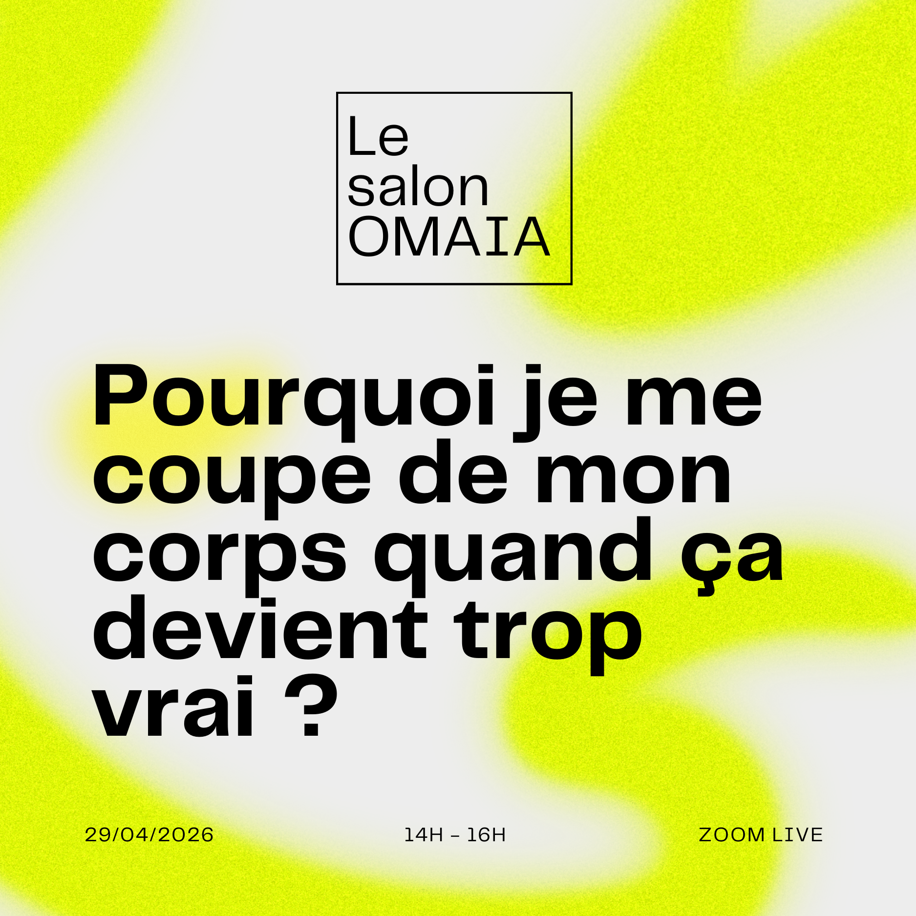 Le Salon OMAIA, c’est un petit comité (places limitées) pour une expérience en direct, intime, confrontante et sécurisante à la fois. Tu repars avec des repères clairs, des clés pour te réguler, et surtout une nouvelle compétence : te croire, avant de te casser.